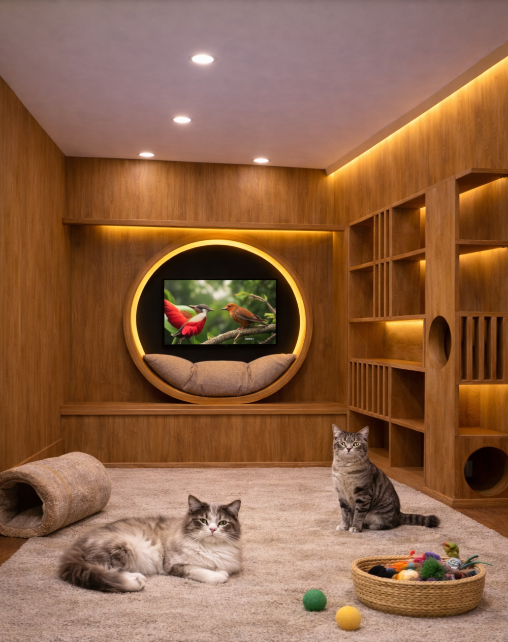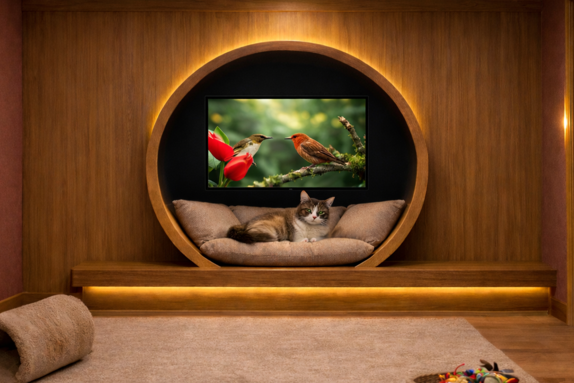 - A Zen-inspired environment with pheromone diffusers, soft acoustics, and cat-only care.